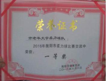 初夏艳阳高照,队员激情满怀。老年学子出彩了!2016年6月6日,衡阳市老年大学柔力球班数十人参加了由衡阳市体委组织的、衡阳市柔力球协会承办的2016年衡阳市柔力球技艺交流比赛活动,比赛中学员精神抖擞。技压群芳,一举夺魁取得了第一的好成绩,荣获一等奖,为衡阳市老干部(老年)大学争得了荣誉。队员们说:“我运动,我健康,我快乐,我是真英雄。”诠释了学无止境、老有所乐的夕阳红多彩生活。