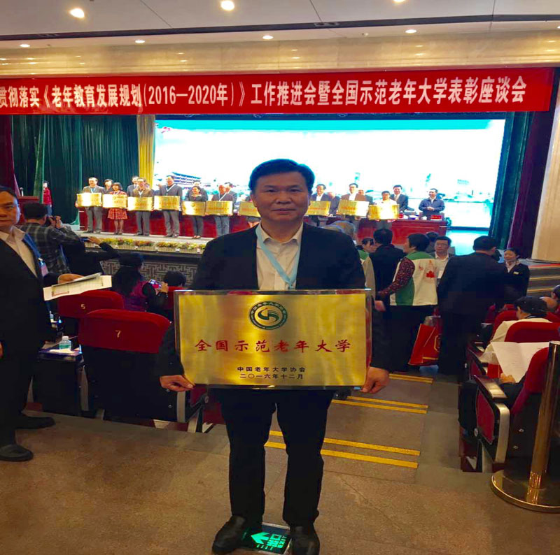 伴随着春天的脚步,3月28日,市老干部活动中心主任、市老干部(老年)大学负责人黄雄前往美丽的花城广州参加由中国老年大学协会举办的贯彻落实《老年教育发展规划(2016-2020年)》工作推进会暨全国示范老年大学表彰座谈会,经中国老年大学协会四届六次常务理事会审定,衡阳市老干部(老年)大学被授予“全国示范老年大学”荣誉称号,十届全国人大副委员长顾秀莲等领导到会讲话,并为全国示范老年大学授牌。