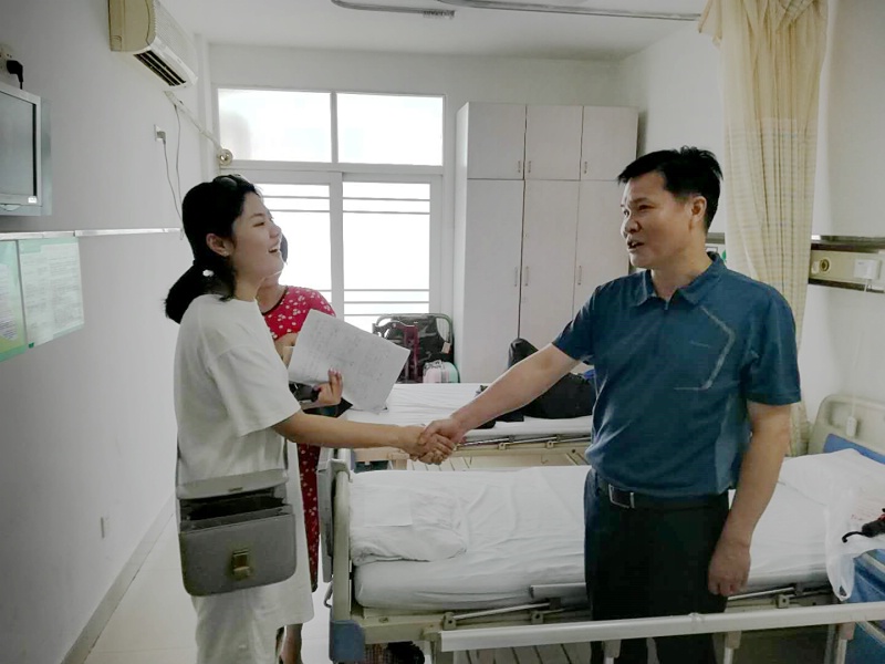 在慰问现场,学校负责人将募捐的善款交到李衡清女儿手里,为这个身患重病的家庭送去了学校最贴心的温暖,并详细了解了李衡清的生活和健康状况,鼓励她要保重身体,勇敢面对生活,早日康复,回校学习。