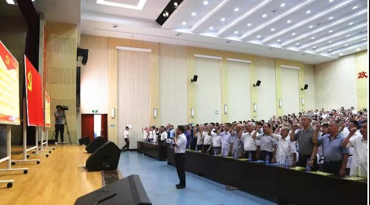 6月22日,面对党旗,400余名离退休干部一起重温入党誓词。鲜红的党旗、熠熠生辉的党徽,铿锵有力的宣誓声让现场所有人深受感染。