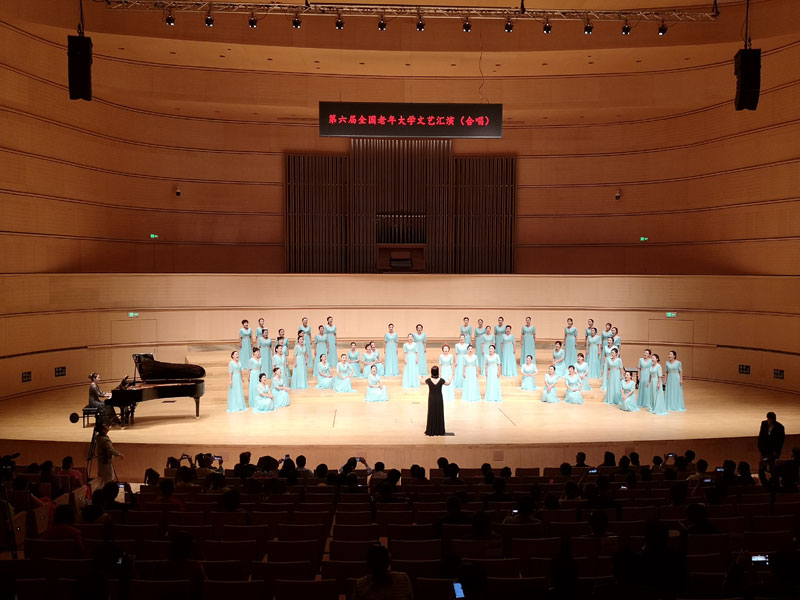今年是改革开放40周年,也是中国老年大学协会成立30周年。为集中展示当代老年人的精神风貌和新时代风采,中国老年大学协会于2018年10月22日至25日在南宁市广西文化艺术中心举办了 “辉煌三十载,同心铸未来”第六届全国老年大学文艺汇演。衡阳市老干部大学女子合唱团参加了合唱比赛。在比赛中,该团完美演绎的是两首经典同声合唱曲目《九儿》、《葡萄园夜曲》,她们以细腻优美的歌声,优雅温婉的律动,征服了评委和现场观众,荣获朱槿花奖(银奖)。