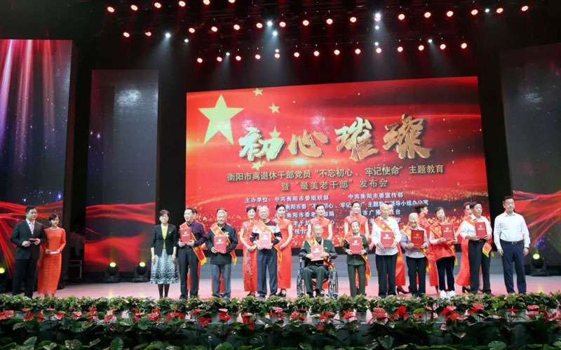 10月11日上午,衡阳市离退休干部党员“不忘初心、牢记使命”主题教育暨“最美老干部”发布会在市广电中心隆重举行,全市9名老干部被授予“最美老干部”荣誉称号。省委老干部局副局长、离退休干部工委专职副书记孔寅湘,市委常委、组织部部长陈竞出席发布会,并为“最美老干部”颁发荣誉证书。