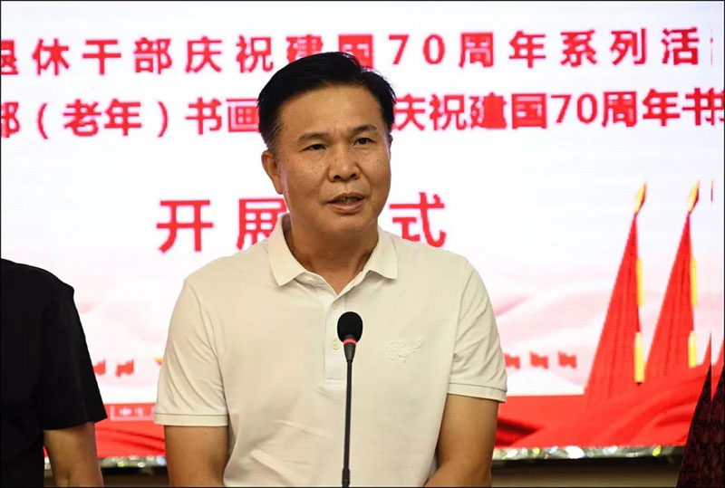 衡阳市老干部(老年)书画协会会长刘运发宣布展览正式开展。