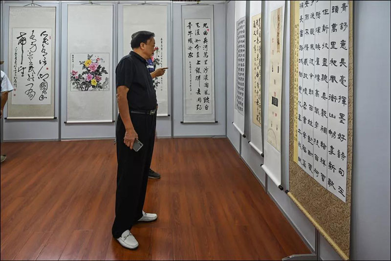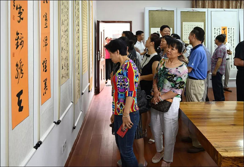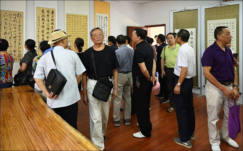 协会会员及书画爱好者踊跃前来参观书画展览,认真品赏各件书画作品。
