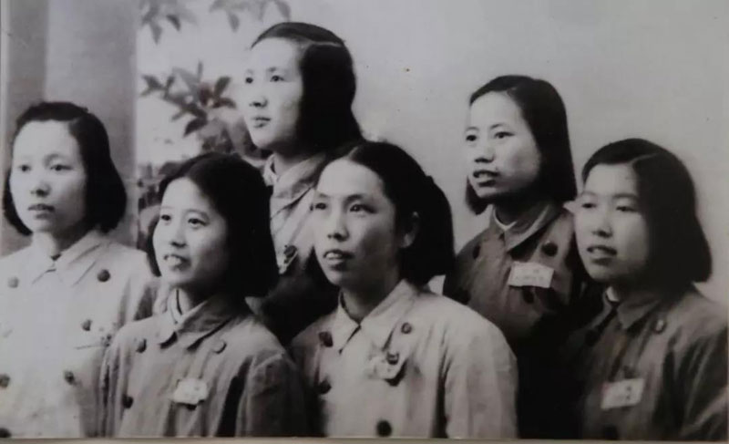 1954年在新疆八一干部子弟学校与其他湘女合影(左一为黄厚瑜)