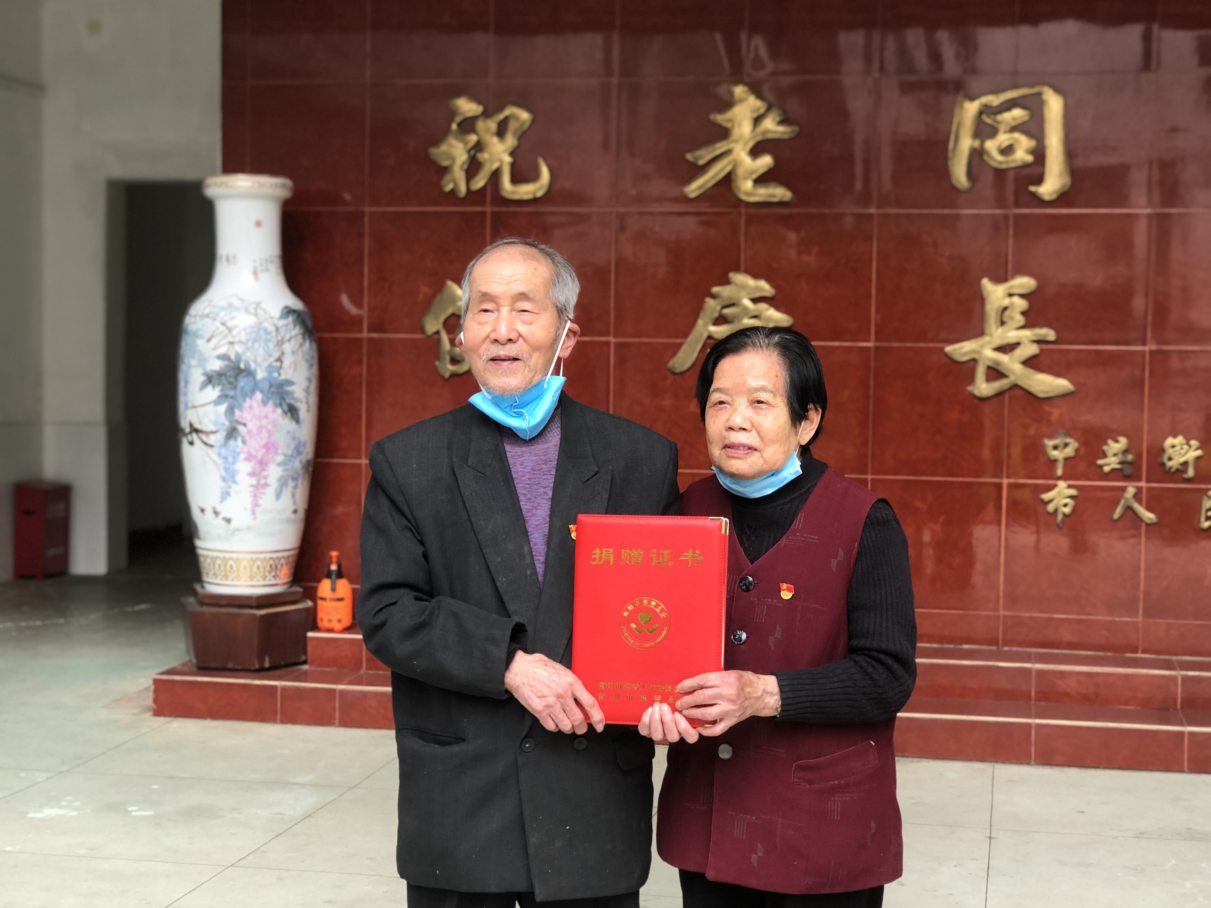 90岁高龄老党员詹永康和其老伴易树敏在学校正式发出倡议书前,就于3月3日专程到学校莲湖校区,现场捐款3000元支持打赢抗疫阻击战。